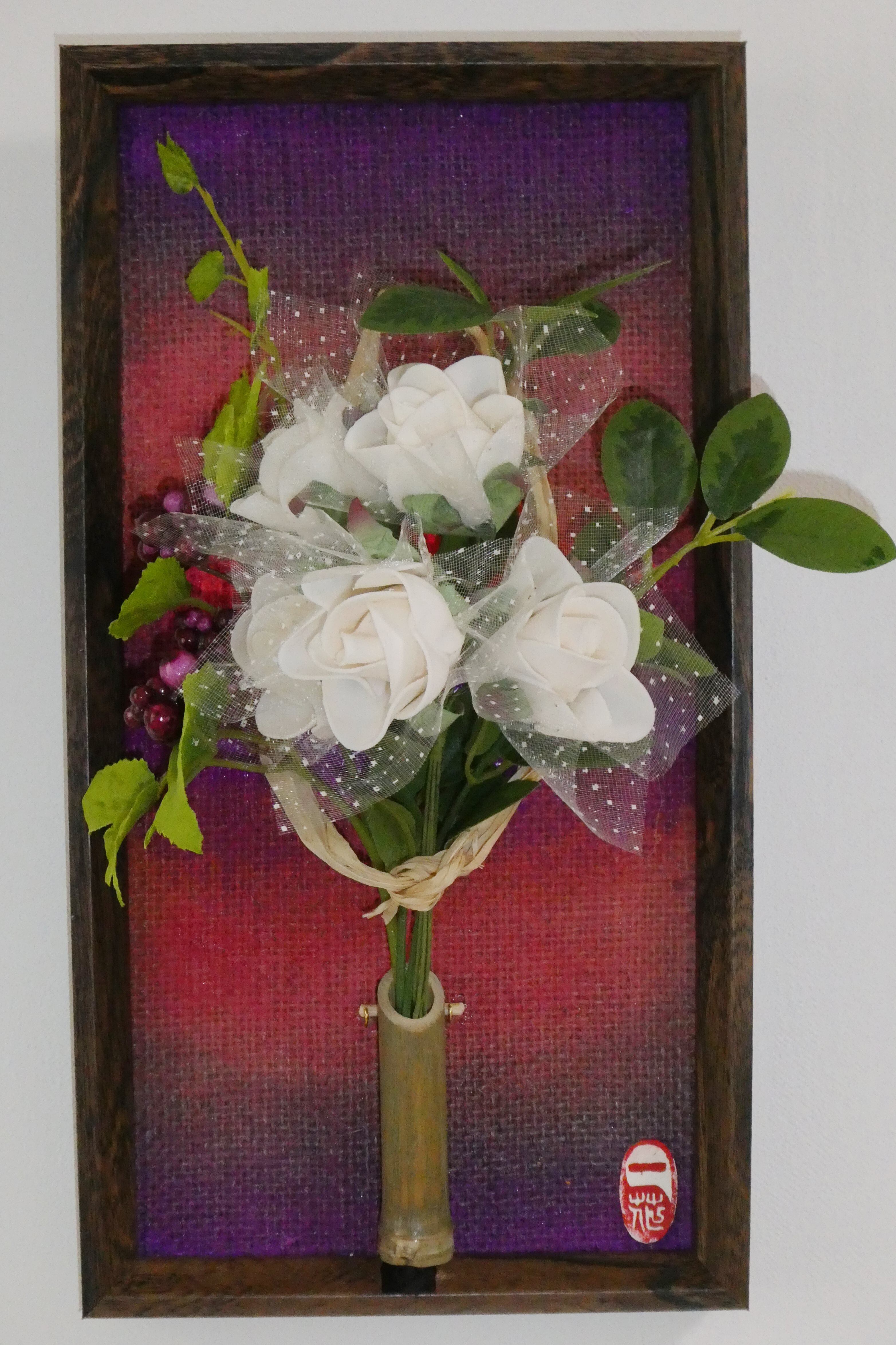 写真のサンプル造花と一緒にお届けさせて頂きますが、お好きな草花にお取替えくださいませ。